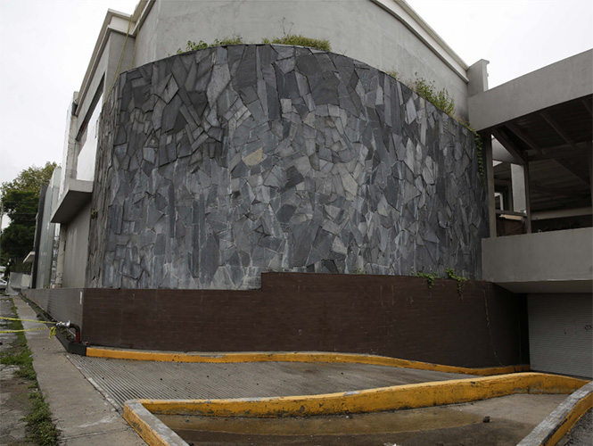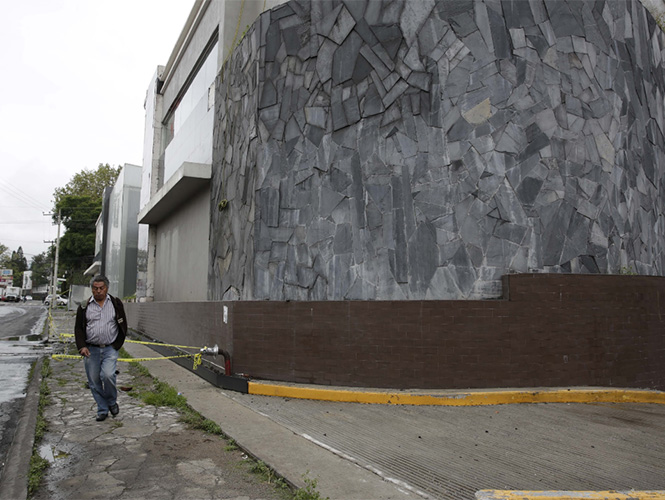 Los tapiales se conservan en la parte frontal y fue acordonada la banqueta de Las Fuentes debido a la caída de los tabiques y el recubrimiento de la fachada.